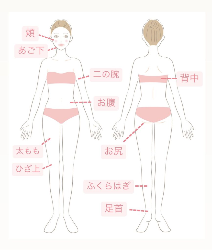 施術時間 | 顔(頬+あご下):約10~15分 身体(二の腕):約10~15分 ※部位や範囲により異なります |