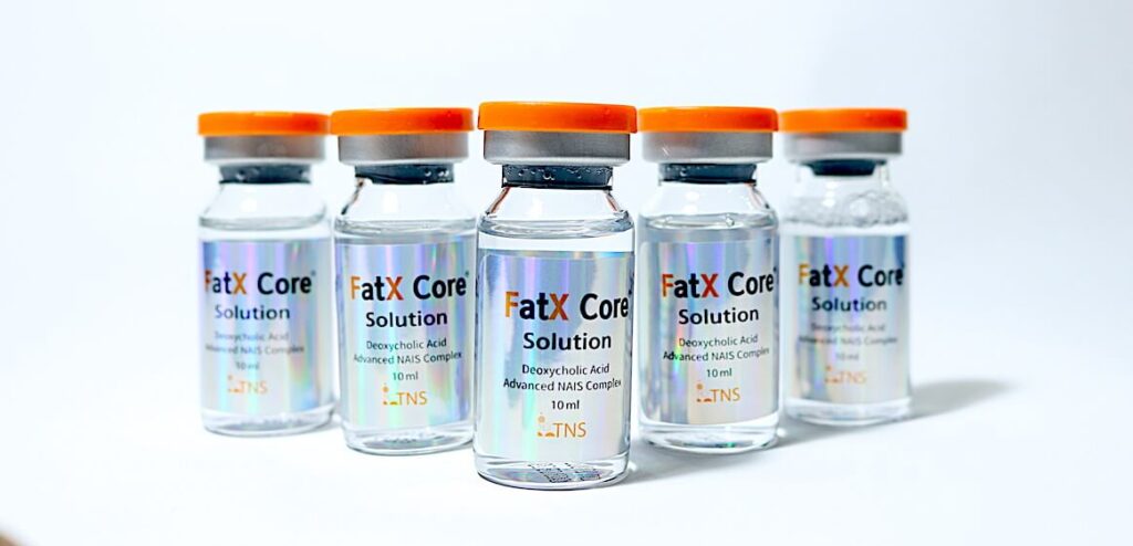 fatX core(ファットエックスコア)とは、米国FDA承認の脂肪溶解成分「デオキシコール酸」を最大量(1%)配合した脂肪溶解注射の薬剤です。