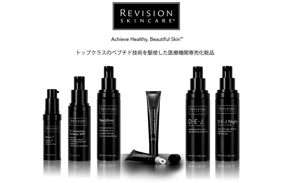 リビジョンスキンケアは、30年以上にわたり全米の医師たちに臨床的に立証された高性能なスキンケア製品を提供してきたアメリカ・テキサス州の企業です。皮膚の表面に存在する多種多様な常在菌マイクロバイオームをサポートし、肌状態を整えたり、アミノ酸の結合によりできるペプチドで、肌のハリ、キメを整えたり、ふんわり弾力のある肌作りが得意なブランドです。