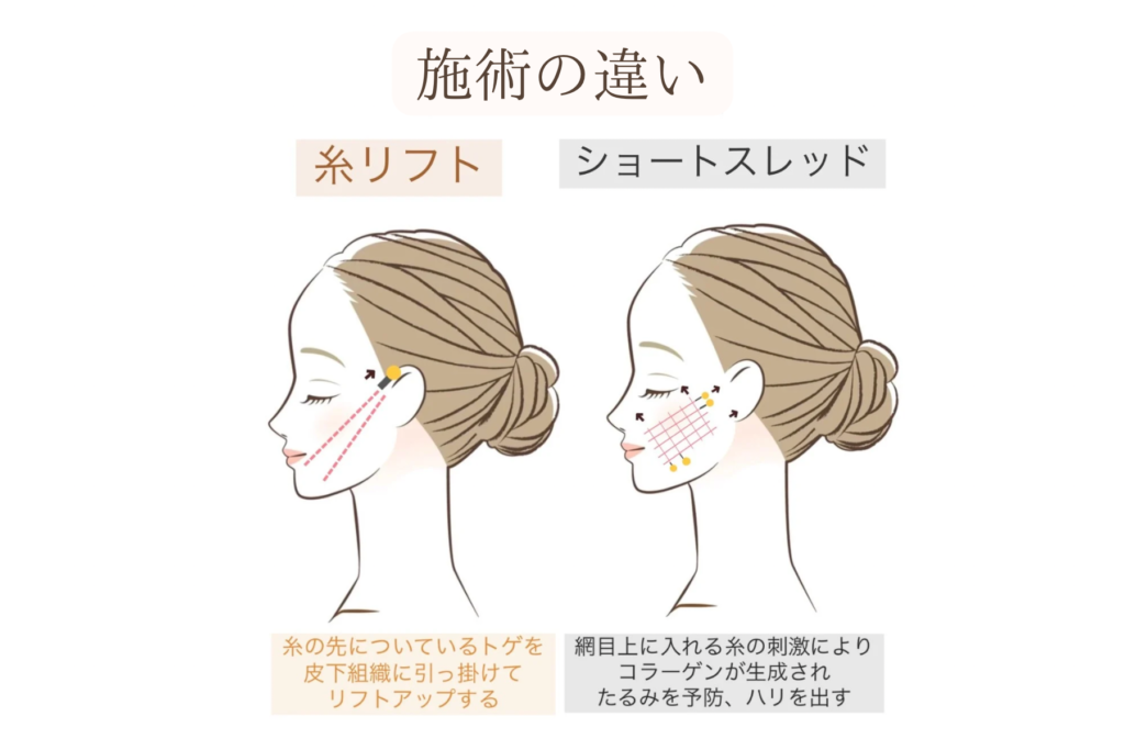 ショートスレッドとは、髪の毛よりも細い糸が装着された針を皮下に挿入し、針を抜いたときに糸だけを皮下に残す施術です。